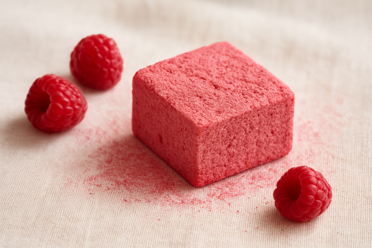 Socker, glukos, nötgelatin, läkemalva, salt, hallonpuré, citron, frystorkat hallonpulver, tapioka